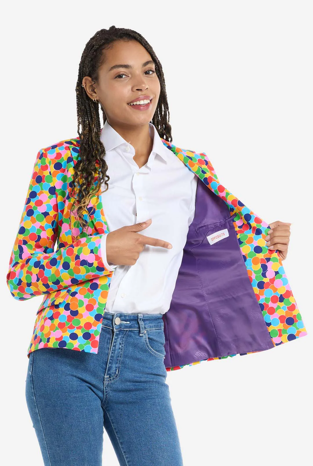 Konfetti sind nicht einfach nur bunte Papierschnipsel – wo Konfetti ist, da ist eine Party! Und aus diesem Grund eignet sich dieser Blazer nur für echte Partylöwen. Jedes Festival, jeder Geburtstag und alle anderen festlichen Anlässe können mit diesem Blazer einfach nur gelingen.