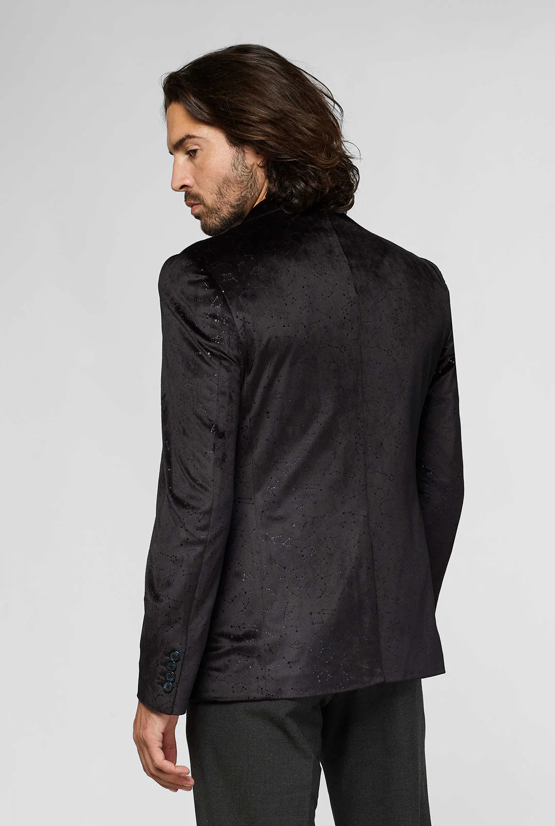Für diesen OppoSuits Deluxe Blazer haben wir uns von der Schönheit des Alls inspirieren lassen und er spiegelt diese wider. Diese geschmeidige Samtjacke mit einem schwarzen Allover-Foliendruck zeigt die berühmtesten Konstellationen der Milchstraße. Das Futter der Galaxie ergänzt das Konstellationsmuster perfekt. Ja, es steht in den Sternen, dass diese Jacke dir einen außerirdisch guten Look verleiht
