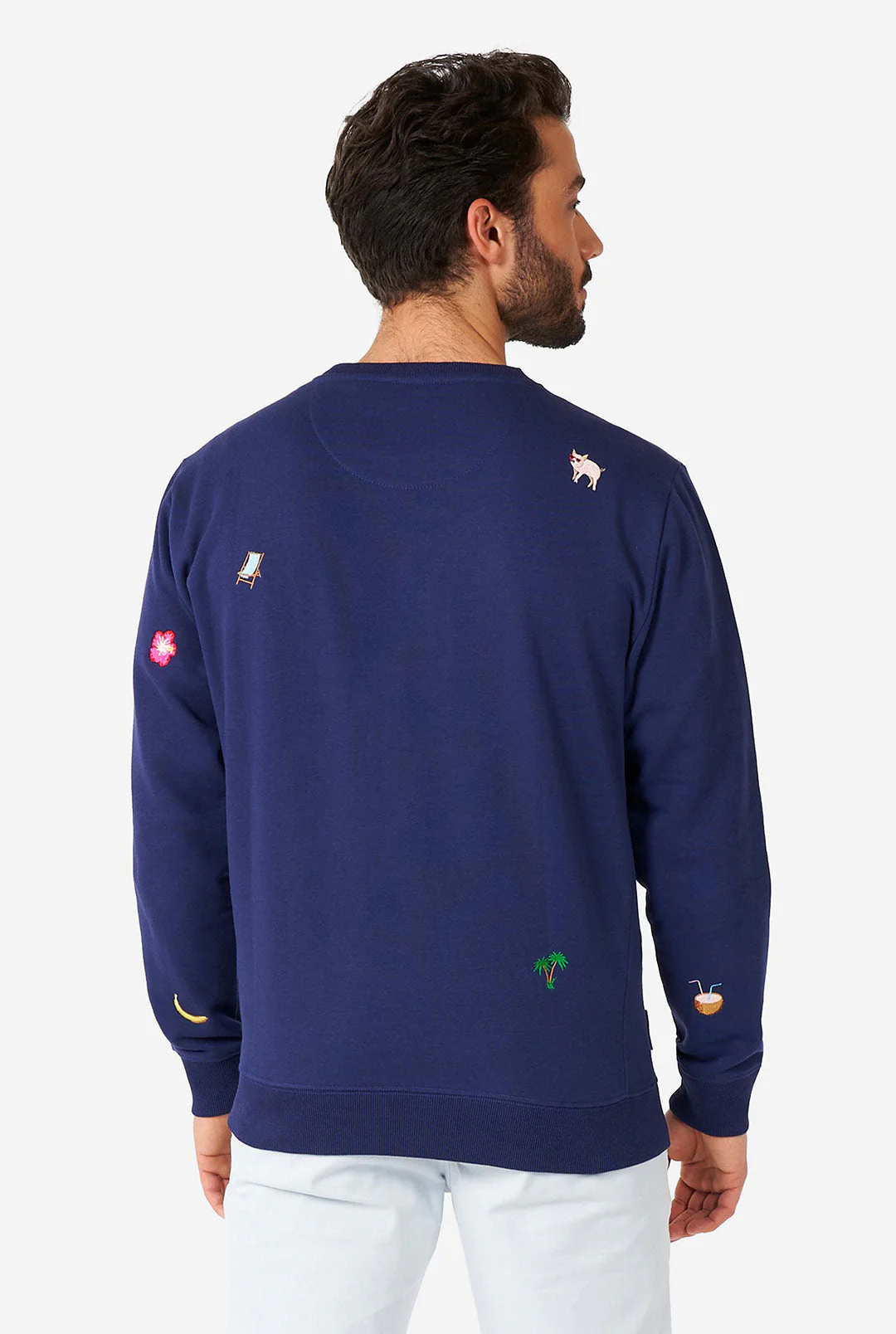 Auch wenn es draußen viel zu kalt ist, möchte man jederzeit für einen kühlen tropischen Cocktail bereit sein. Dieser hochwertige Pullover hat eine geschmackvolle Stickerei, die die vielen Aspekte der Freude an Wärme, Spiel und Sommer zeigt. Perfekt für lange Spaziergänge entlang des Sonnenuntergangs - dieser Pullover ist Ihre Eintrittskarte ins sonnige Paradies!