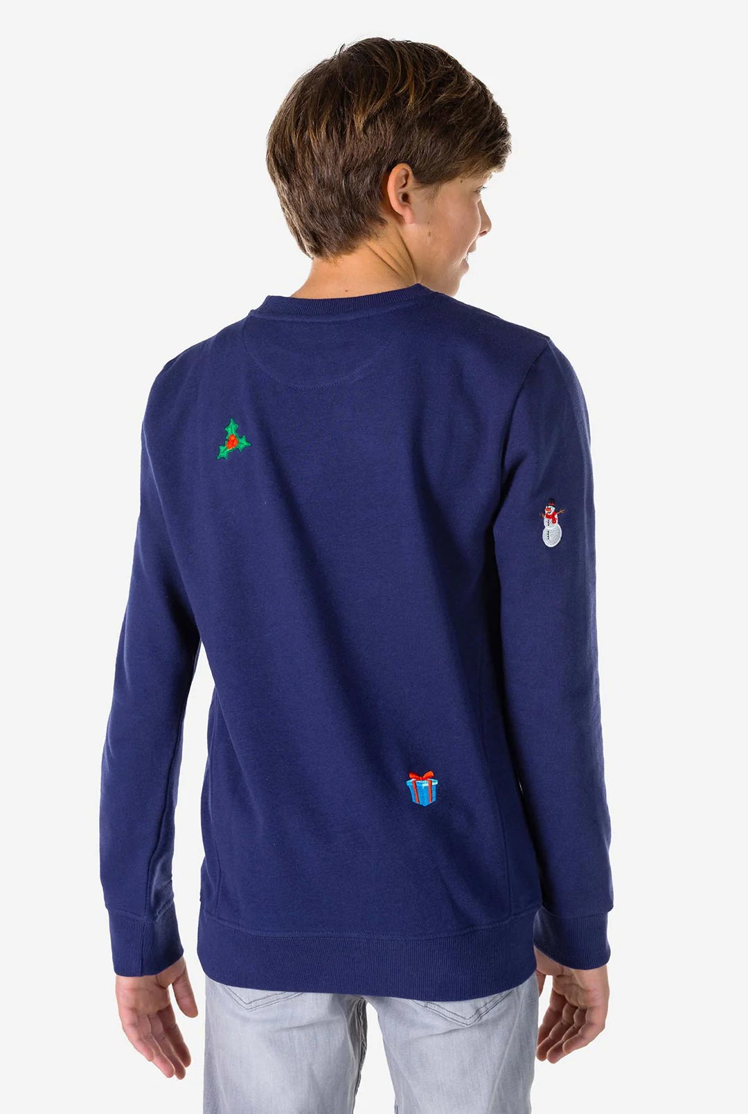 Wenn Sie auf der Suche nach einem eleganten und raffinierten Weihnachtspulli sind, in dem Sie es sich während der Feiertage gemütlich machen können, dann ist der navyfarbene X-Mas Icons genau das Richtige für Sie. Dieser glatte, dunkelblaue Deluxe-Pullover ist mit typischen Weihnachtssymbolen bestickt und besteht aus einem weichen Material, das Sie von jetzt an bis zum Weihnachtstag (und weit darüber hinaus) tragen werden.